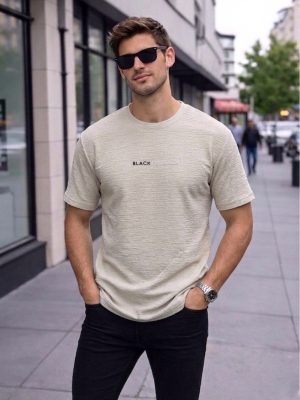 Erkek Ekru Yarım Fermuarlı Siyah Triko Kazak