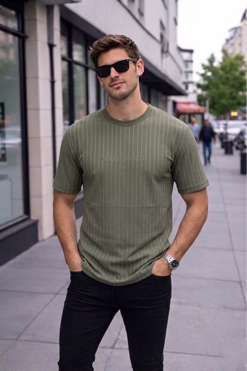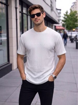 Dokulu slim fit tişört ile sade ama güçlü bir stil