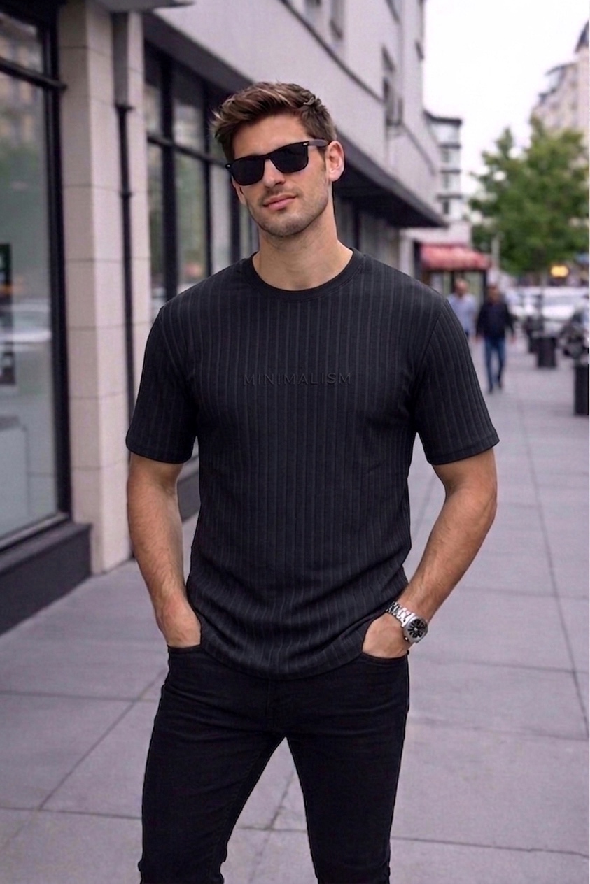 Dokulu slim fit tişört ile sade ama güçlü bir stil