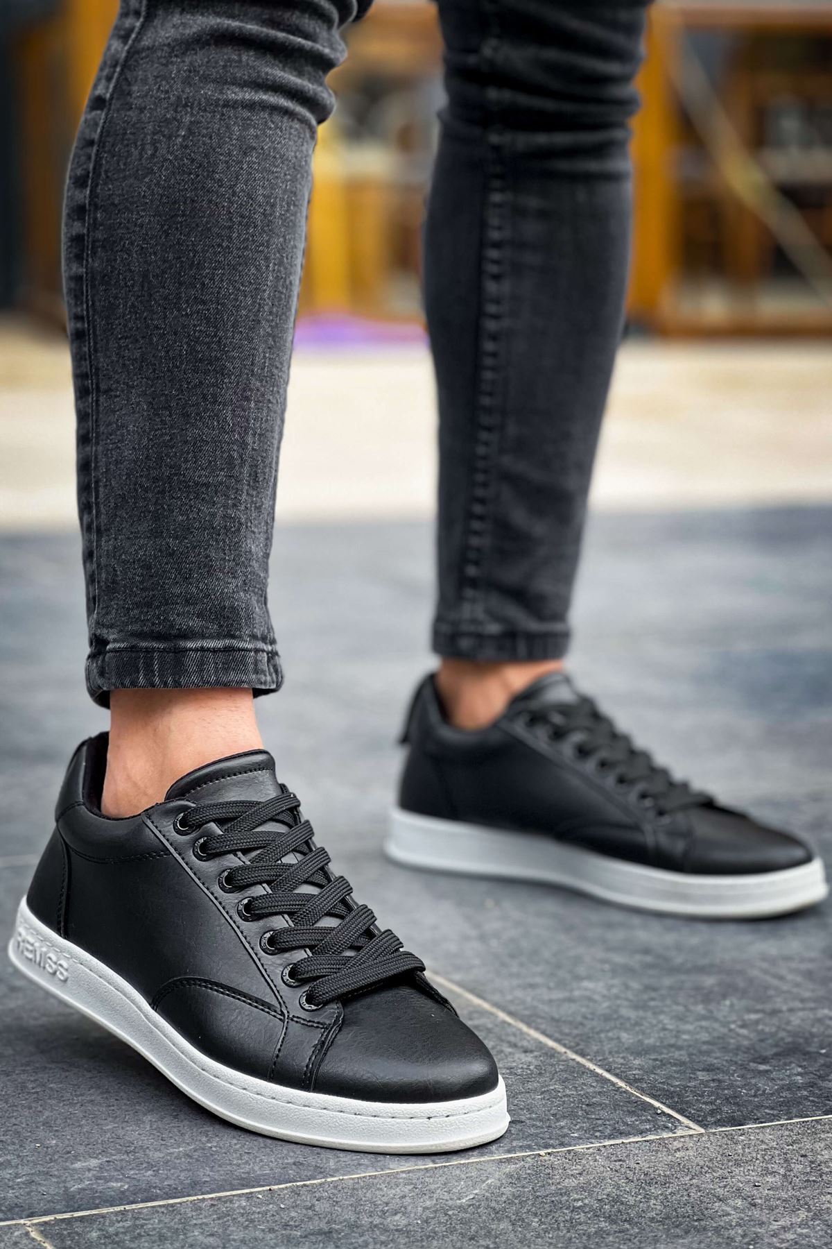 Erkek Düz Taban Siyah-Beyaz Spor Ayakkabı