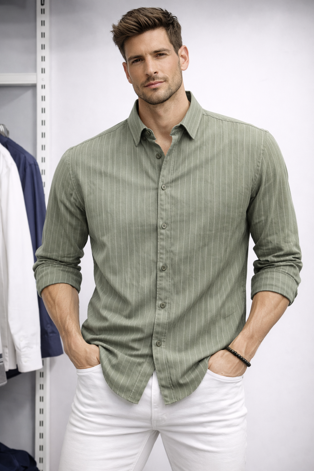 erkek gömlek, haki gömlek erkek, slim fit gömlek, çizgili erkek gömlek, pamuklu gömlek, spor gömlek erkek, smart casual gömlek, baharlık erkek gömlek, uzun kollu gömlek, erkek yazlık gömlek