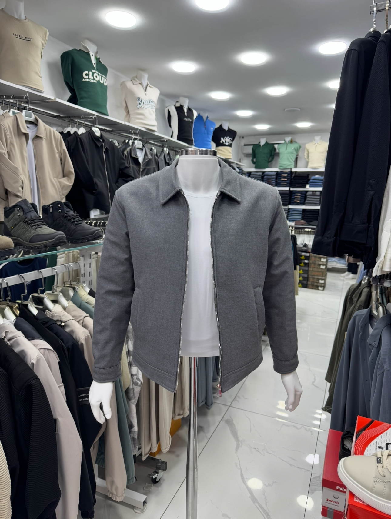 erkek gri ceket, fermuarlı erkek mont, mevsimlik erkek ceket, slim fit erkek ceket, casual erkek mont, günlük erkek ceket modeli, gri erkek mont