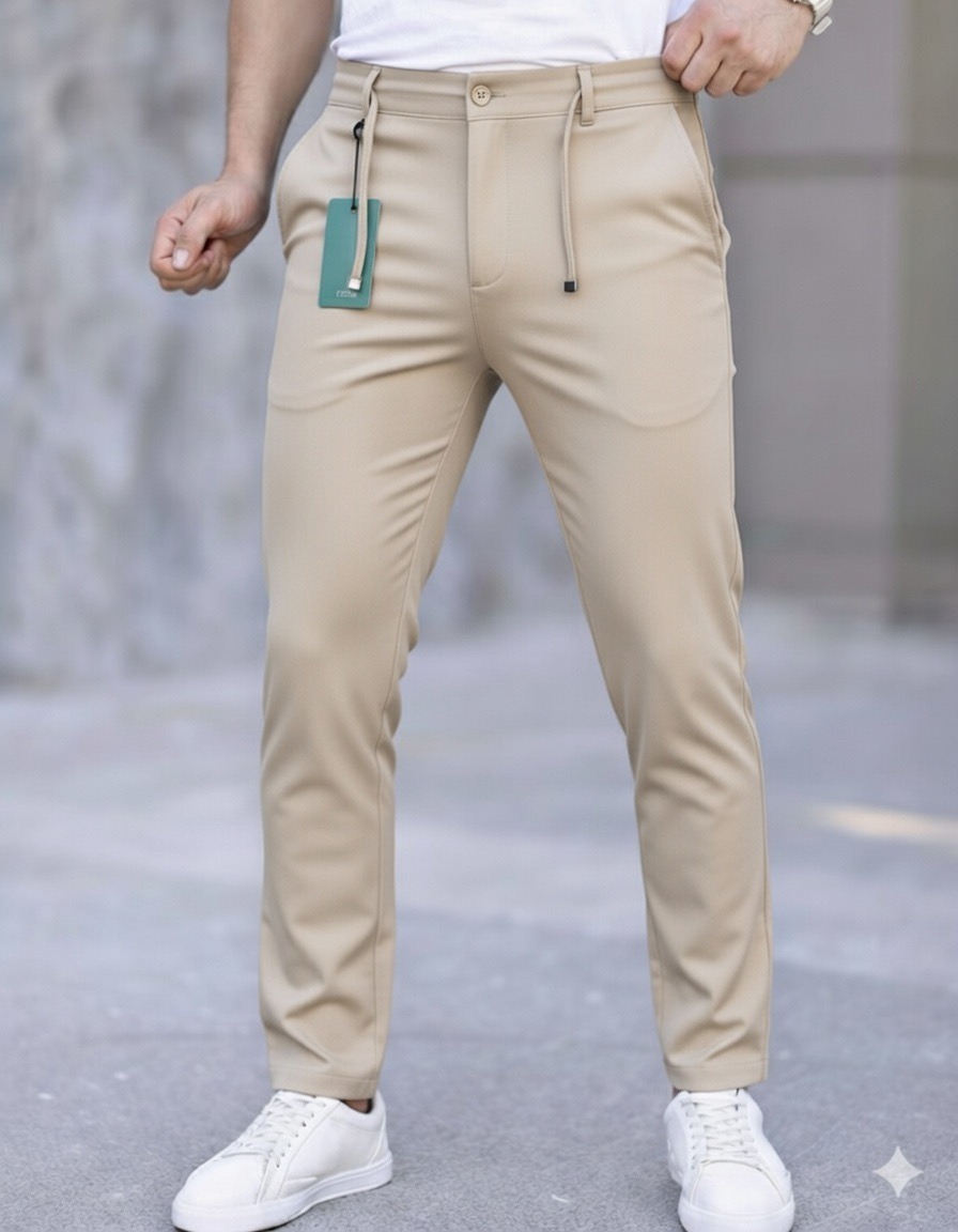 Bej slim Fit Erkek Pantolon – Bağcıklı Bel, Günlük & Şık Kombin