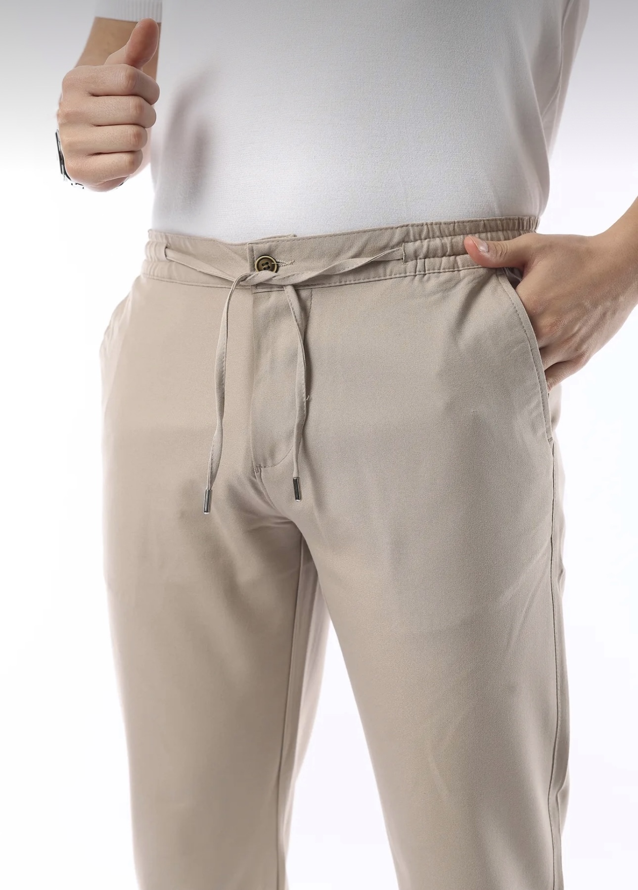Erkek Jogger Slimfit Lastikli Bej Kumaş Pantolon