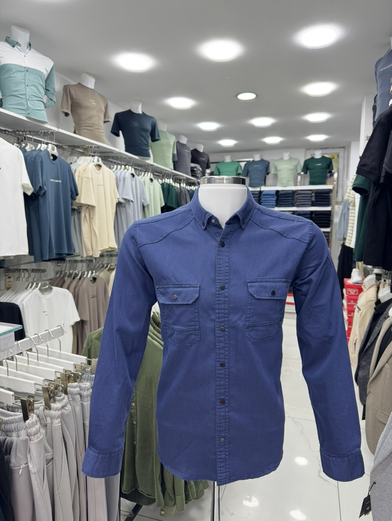 Modern ve maskülen tarzı bir araya getiren lacivert slim fit erkek gömlek, fit kalıbı sayesinde vücuda oturarak şık bir siluet oluşturur. Çift kapaklı cep detayı ve kontrast düğmeleriyle spor–şık kombinler için ideal bir parçadır. Günlük kullanım, ofis stili ve hafta sonu kombinlerinde rahatlıkla tercih edilebilir.