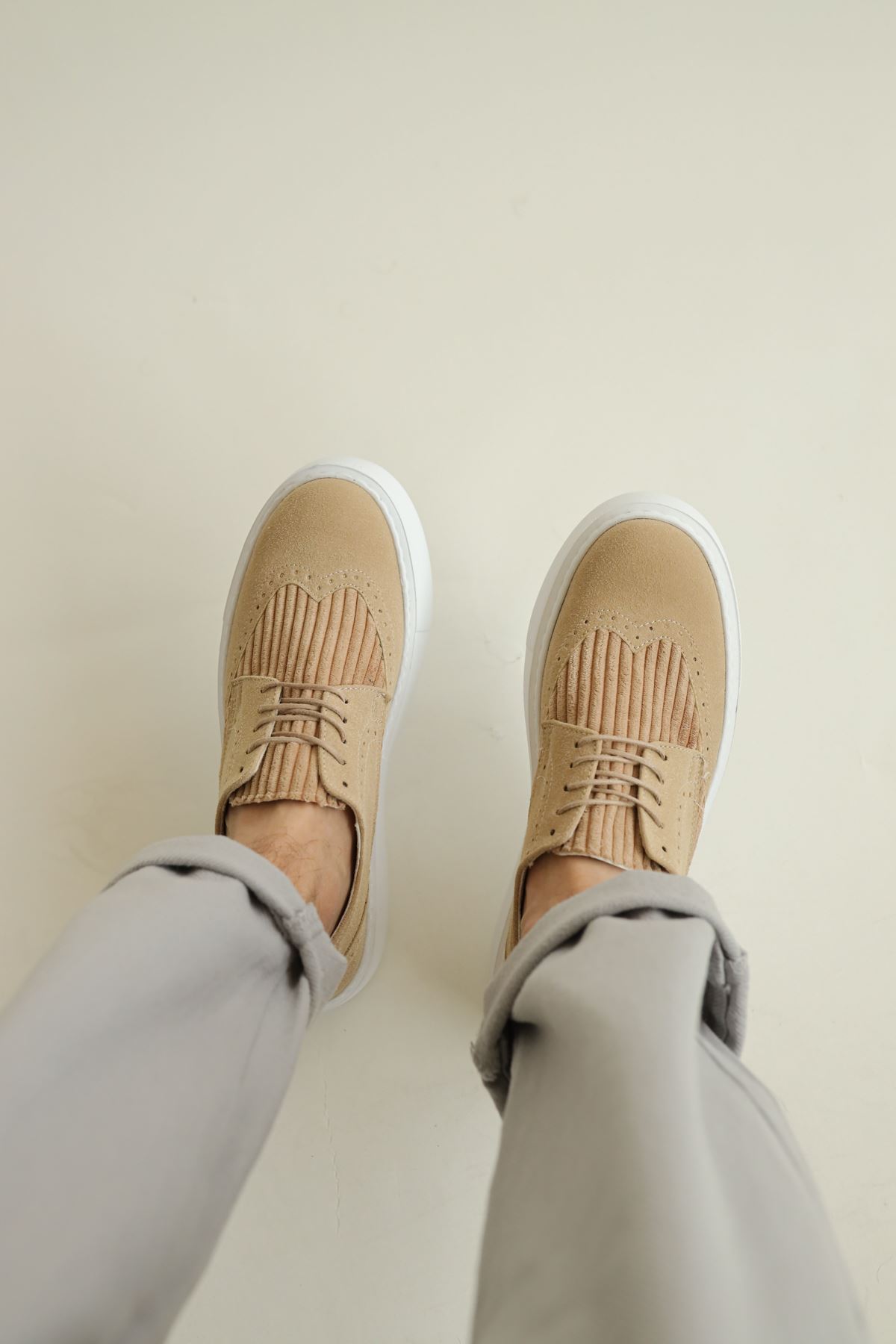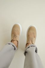 Düz ve yüksek tabanlıdır ve ortopedik taban özelliği ile rahatlık sunar. Günlük kullanım için uygun, şık ve modern bir tasarıma sahiptir.  Ayakkabı suni deriden yapılmıştır ve %100 vegan içeriğe sahiptir.