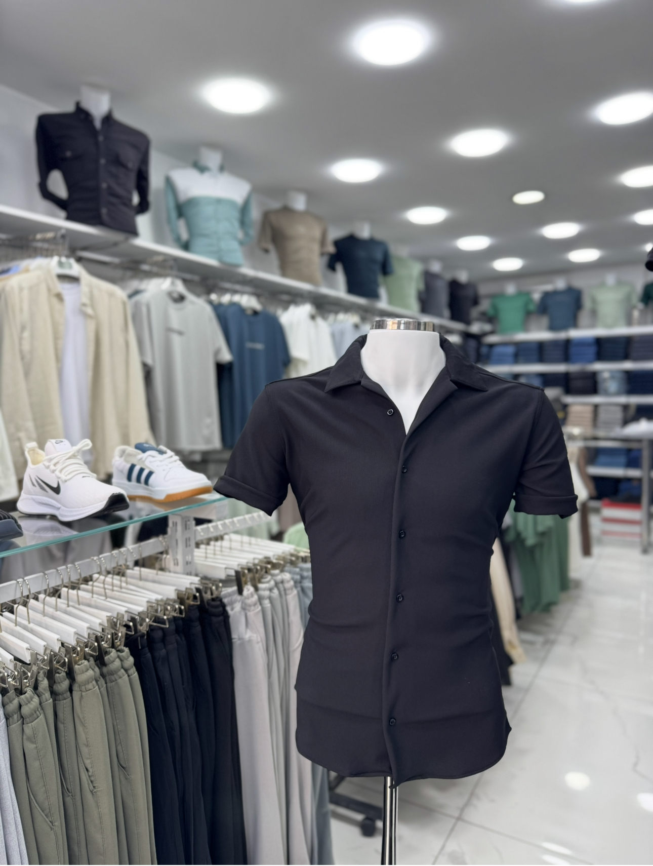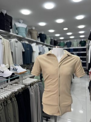 Erkek Likralı Kısa Kollu Apaş Yaka Gömlek