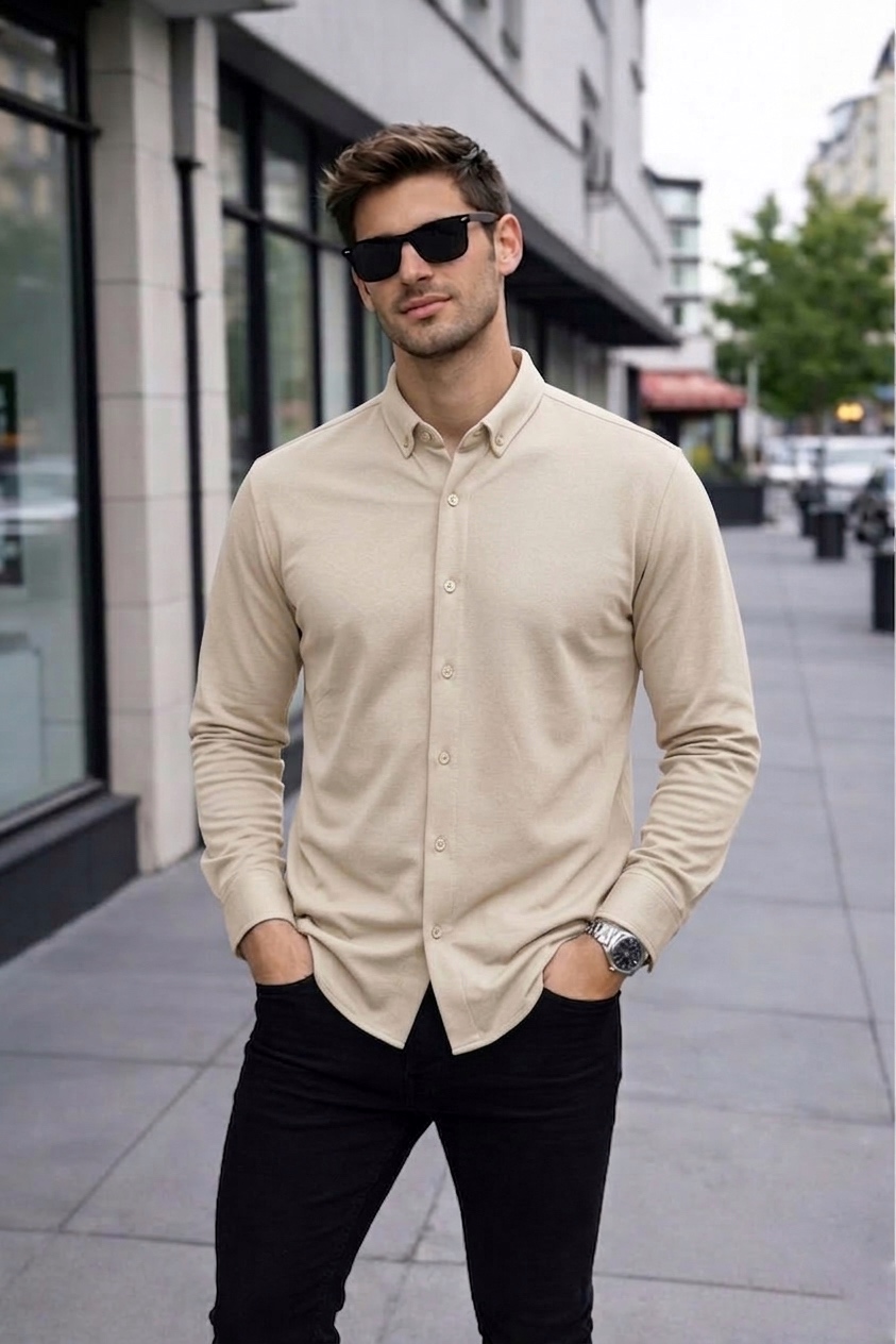 Bej tonunun sade ve zamansız şıklığı sayesinde hem günlük kombinlerde hem de smart-casual tarzda rahatlıkla tercih edilebilir. Jean veya kumaş pantolonlarla kolayca kombinlenebilen bu gömlek, şehir stiline modern bir dokunuş katar.