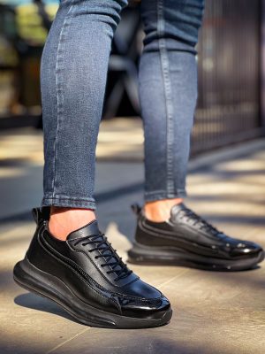 Düz ve yüksek tabanlıdır ve ortopedik taban özelliği ile rahatlık sunar. Günlük kullanım için uygun, şık ve modern bir tasarıma sahiptir. Ayakkabı suni deriden yapılmıştır ve %100 vegan içeriğe sahiptir.