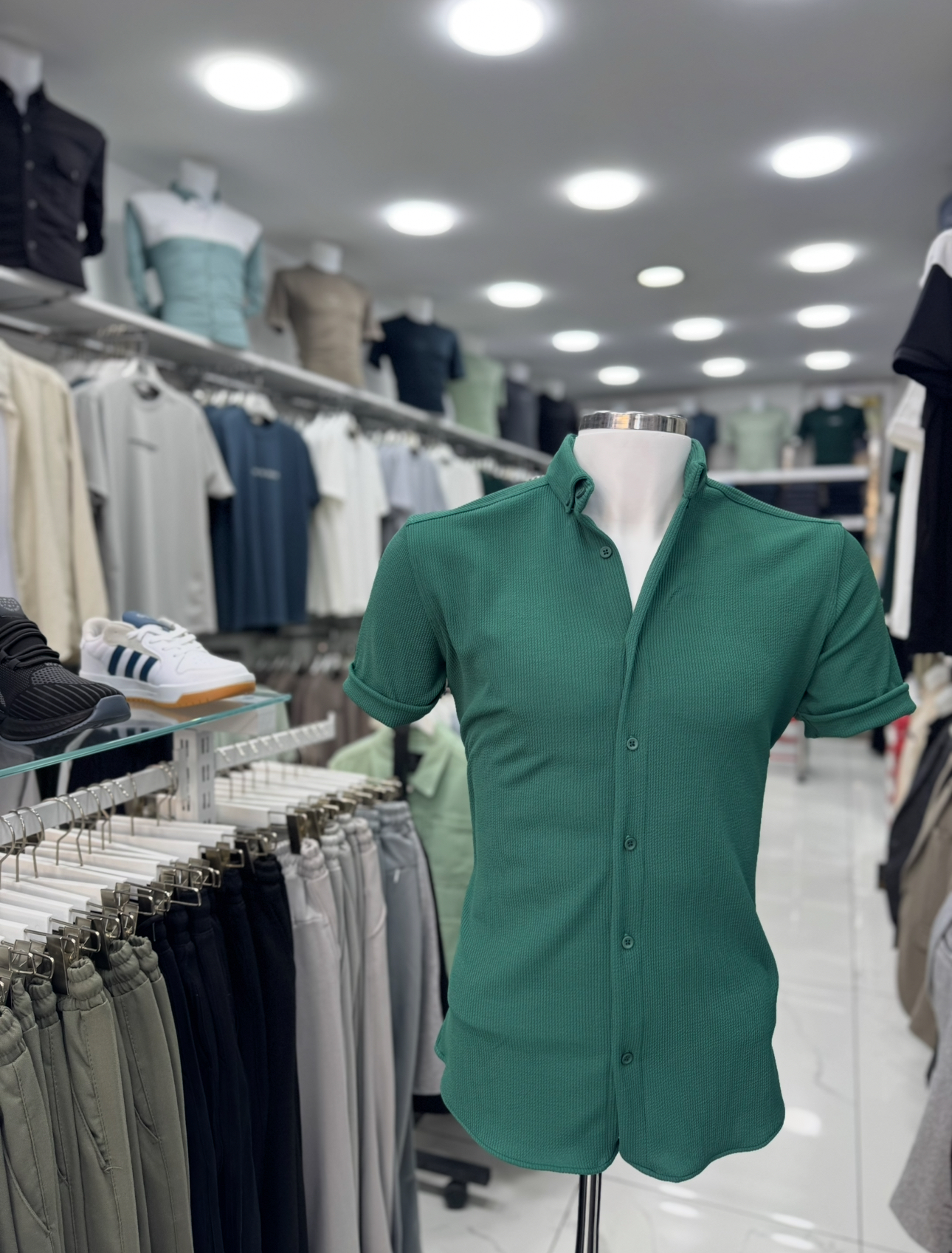Erkek Slim Fit Kısa Kolu Likralı Gömlek