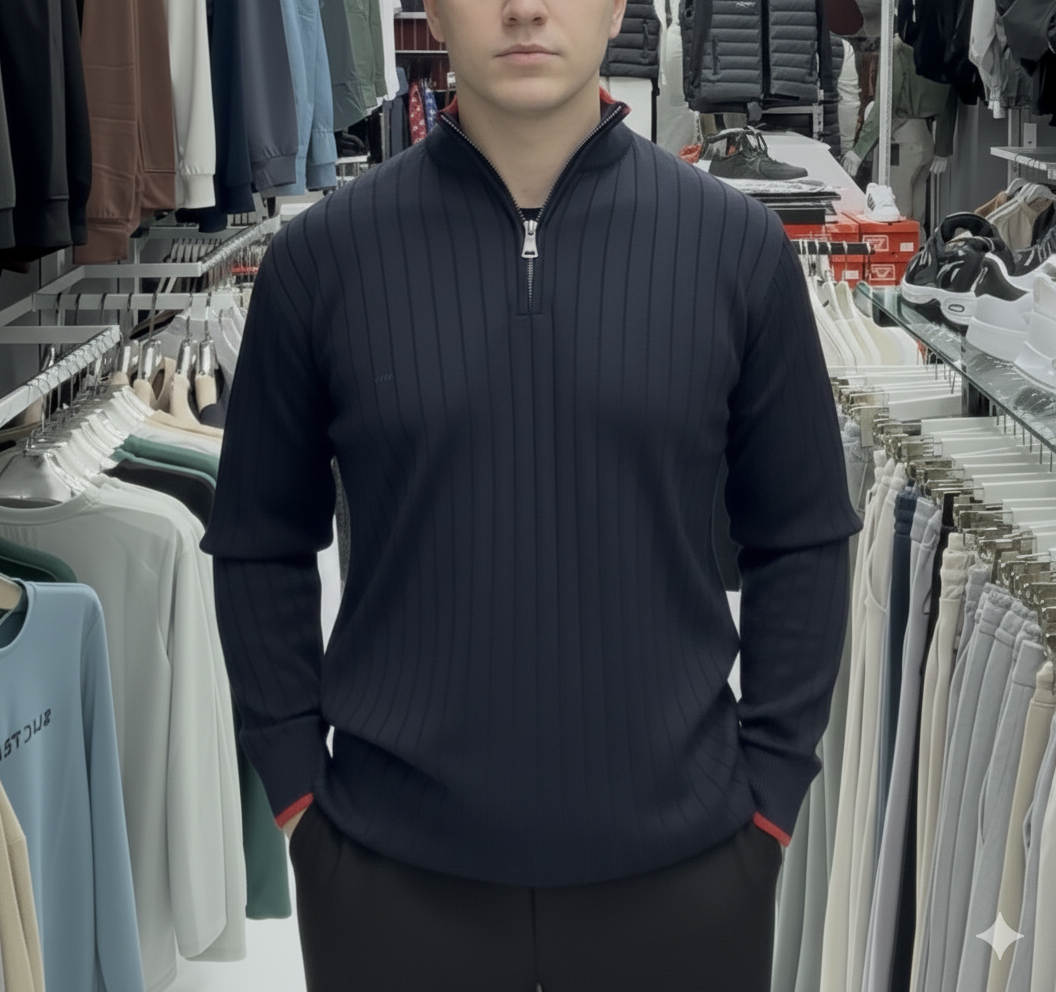 Slim fit kesimi vücuda oturur ve şık bir siluet oluşturur. Yarım fermuar detayı ise hem sportif hem klasik kombinlere uyum sağlar. Siyah, bej veya gri pantolonlarla rahatlıkla kombinlenebilir.