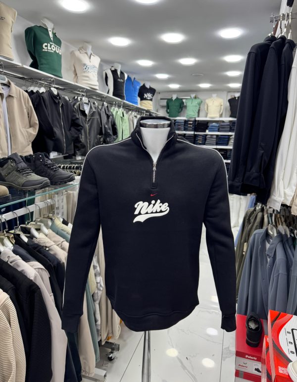 erkek sweatshirt, siyah sweatshirt, yarım fermuarlı sweat, dik yaka sweatshirt, spor erkek sweat, erkek spor üst, casual erkek sweatshirt