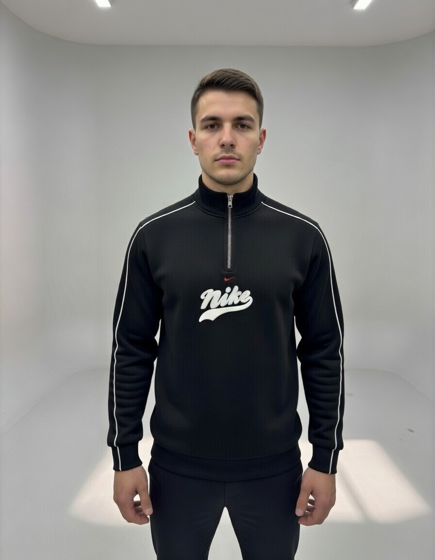 Modern ve sportif tasarımıyla öne çıkan siyah fermuarlı erkek sweatshirt, günlük kombinler ve hafta sonu stilinin vazgeçilmez parçası.